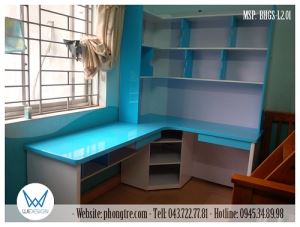 Khi 2 trẻ đặc biệt là 2 trẻ sinh đôi được bố trí sử dụng chung một góc học tập, Bố Mẹ thường muốn làm bàn học đôi cho con. Với nhu cầu sử dụng của 2 học sinh, bàn học đôi cần có thiết kế hợp lý để mang đến vị trí ngồi học thoải mái cho 2 trẻ đồng thời có thể cung cấp khả năng lưu trữ cơ bản (nếu góc học tập lớn và trẻ có thêm chỗ kê kệ sách riêng dành cho góc học tập) hoặc khả năng lưu trữ đủ để đáp ứng nhu cầu của 2 học sinh (góc học tập có diện tích nhỏ, cần được thiết kế sao cho có khả năng lưu trữ tốt và vẫn tiết kiệm diện tích).