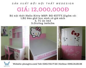 Những món đồ nội thất được tạo hình Mèo Hello Kitty như giường ngủ Kitty, bàn học Kitty, bàn trang điểm Kitty, tủ áo Kitty... luôn khiến cho bé trầm trồ yêu thích.