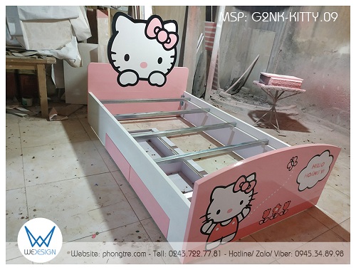 Kết cấu giường 2 ngăn kéo Hello Kitty 1m2 G2NK-KITTY.09